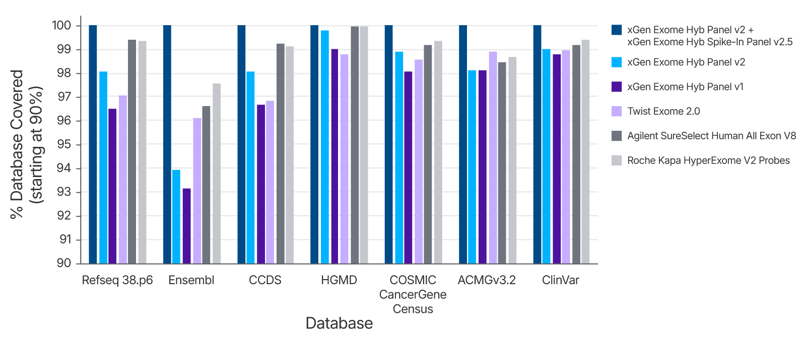 For researchers seeking broader coverage, combining the xGen Exome Hyb Panel v2 with the xGen Exome Hyb Spike-in Panel v2.5 unlocks access to newly identified targets from key databases, including: